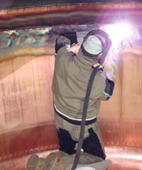- Wassertankreparatur: Heraustrennen des korrodierten konischen Bodens und Einschweißen eines neuen Konusbodens auf Teile